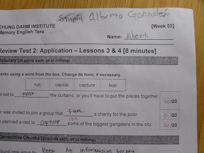 Out of all the students at CDI, I've had him a surprising number of times. I had him in my Spring 2007 English Chip 4 class (my first term at CDI), then again in Fall 2007 in Memory English Giga. Now it’s Spring 2008 and he’s in my Memory English Tera class.