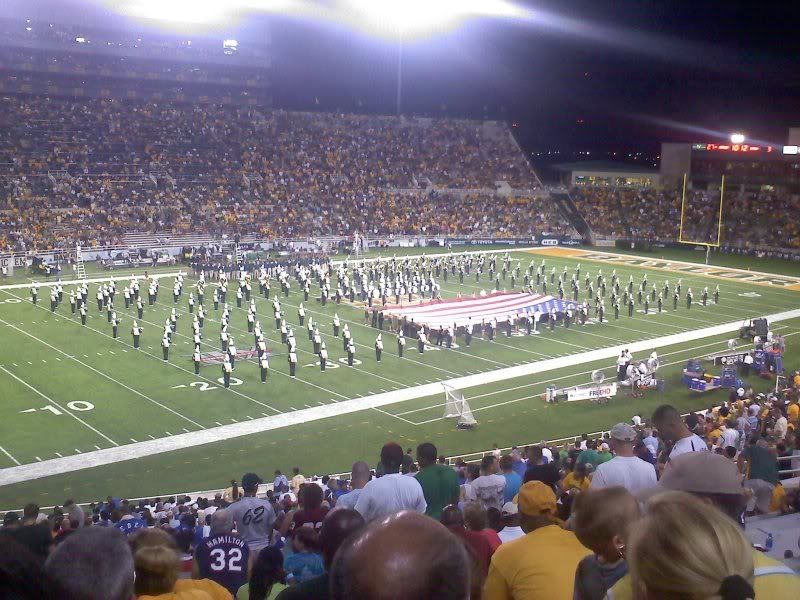 We had a good time -- for 9/11 they did a special recognition of the military fans -- and I got to have some funnel cake. (That's always a good deal.) Plus there was a marching band halftime show, which is one of the reasons why I like college games a bit more than professional teams.